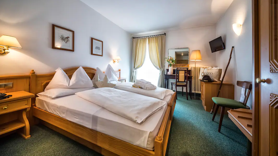Just a 5-minute walk from the Baranci lift, the hotel is conveniently located, yet enjoys a peaceful position in the town of San Candido. A mixture of modern and vintage décor adorns the public spaces, from traditional bar stools to ornate cupboards and Persian rugs. The bedrooms are spacious and comfortable, and dotted with bygone furnishings to add a Tyrolean touch.