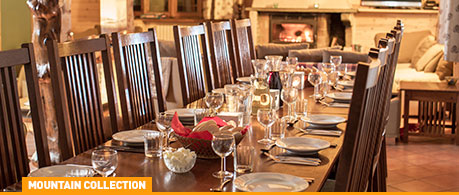It's one of the most spacious chalets we have. The lounge/diner is huge with lots of exposed wooden beams and mountain artefacts to admire while you enjoy afternoon tea in a deep, comfy sofa. Prime position for a catch-up at the end of the day is in front of the large open fireplace, so grab a slice of cake early on.