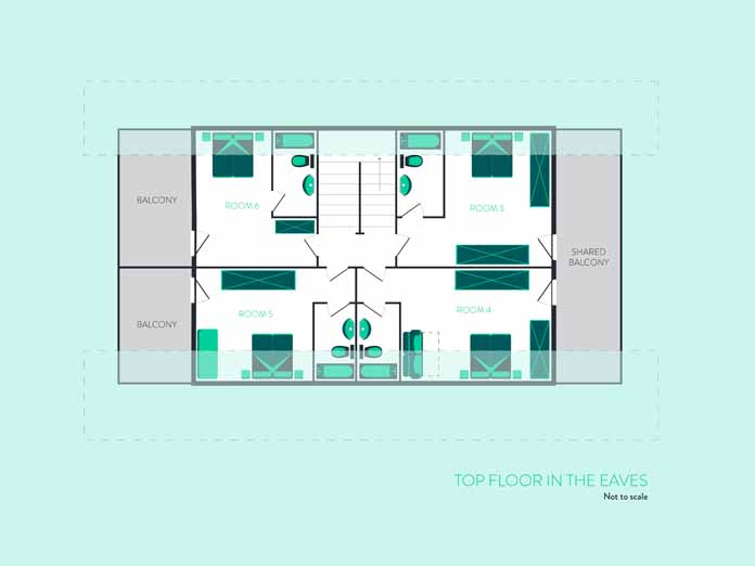 Room 6 - Twin room - Sleeps 2: with Austrian twin beds, small bath (with shower attachment), WC and balcony