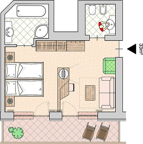 All rooms have bath or shower, bathrobes and slippers, hairdryer, satellite TV, telephone, minibar and balcony.