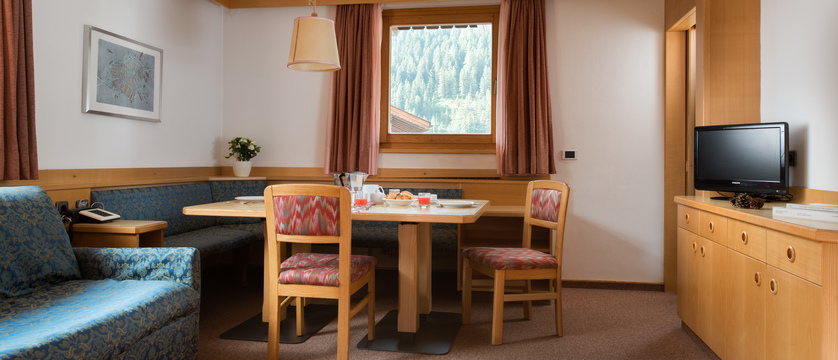 Residence Lores is a small residence perfect for guests looking for good value for money within easy walking distance of the resort centre. Only 5 minutes’ walk (400m) to the Nives lift and 500m from the centre of resort - a supermarket is also located nearby. Optional upgrades to include meals are available. There are 2 apartment types available which sleep from 2 to 8 people and use of spa facilities and pool at Hotel Antares 600m away is also included.