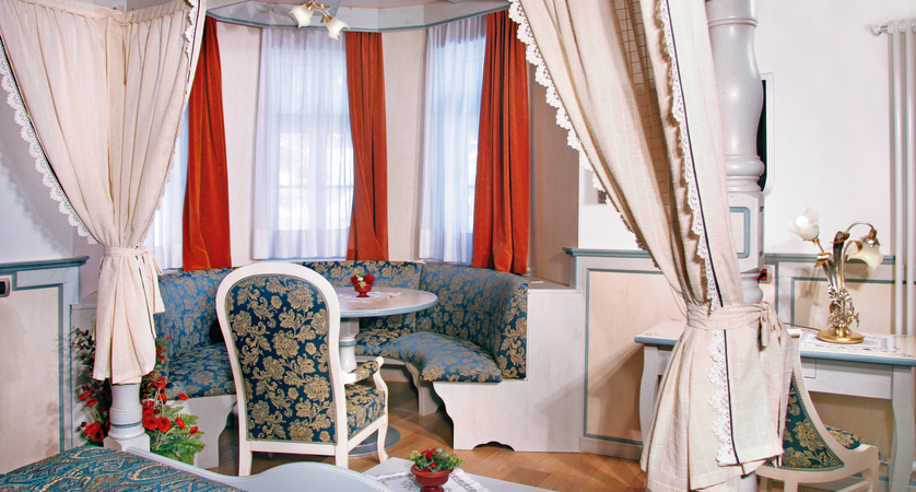 When it comes to a restful night’s sleep, the bedrooms are each furnished in a unique alpine style. The Classic Rooms are comfortable, simply furnished, and equipped with everything needed for a stay in the mountains. For a more luxurious experience, upgrade to the more spacious Prestige Rooms complete with a hydro massage bathtub or shower. The hotel’s ambiance reflects the traditional alpine style, creating a cozy and inviting atmosphere.