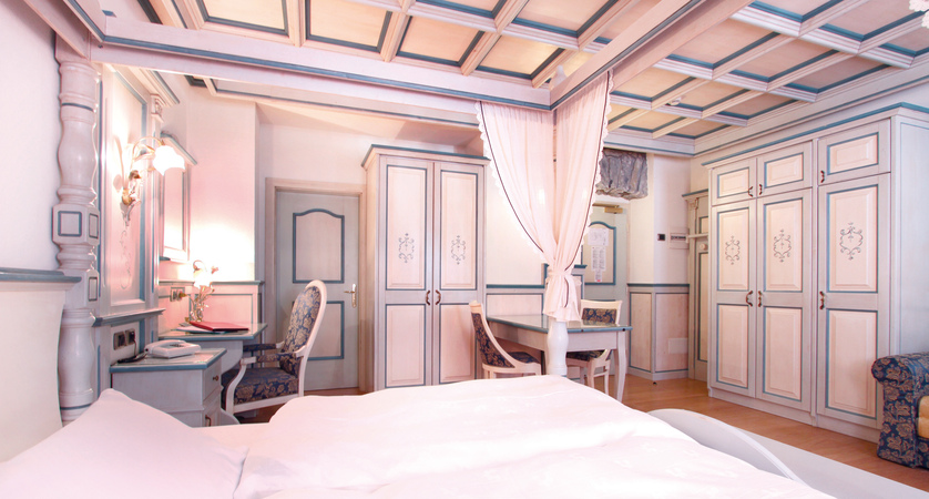 With its grand design, bright exterior and colourful shutters, the Hotel Dolomiti definitely stands out amongst the snowy mountain peaks. Once you head inside the same grandness continues with vaulted ceilings, Tyrolean style paintings and comfortable rooms.