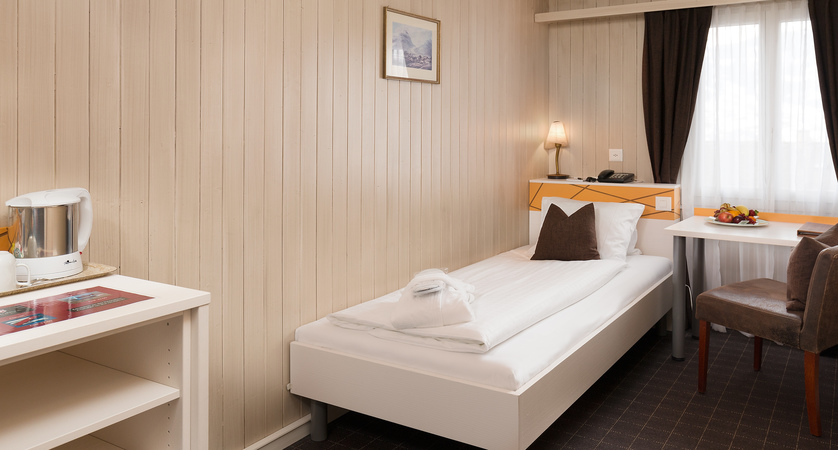 South-facing twin rooms have balcony or terrace with Mount Eiger views