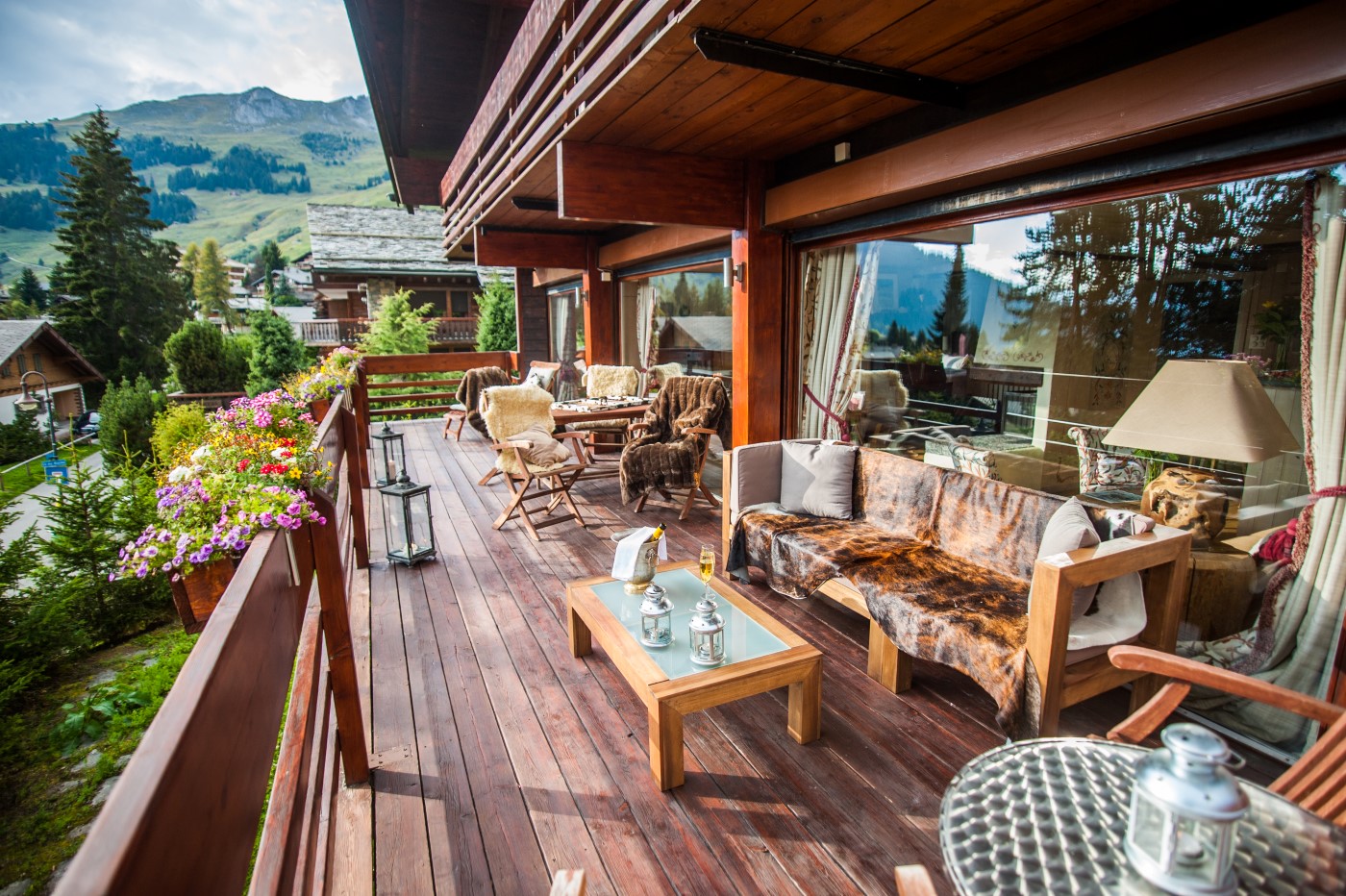 Chalet Ker Praet is arranged over four floors and boasts eight luxurious, well-proportioned bedrooms harmoniously combining Swiss tradition and modernity. The chalets comfortable and tasteful living room has its own bar and a traditional Swiss fireplace. A spacious terrace, complete with a comfortable seating area, allows guests to get cosy under faux-fur blankets and enjoy the mountain sunsets.