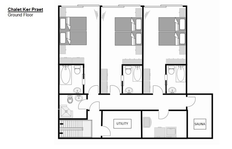 Ker Praet sleeps up to 16 guests over eight bedrooms. 7 x twin bedrooms (four with en-suites) 1 x large double with ensuite 2 x further bathrooms 1 x shower room and sauna 1 x Games room / private office