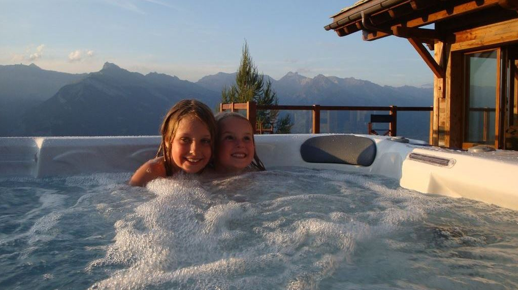 As you enter the chalet, on the middle floor, you are welcomed by the large open-plan mezzanine kitchen-dining area. To the right is an attached annex-style room, complete with its own TV room and another mezzanine style room that can accommodate up to 3 guests (1 x single and 1 x double bed). From the kitchen-dining area, a few steps take you down into the main living area. The glass fronted windows showcase the impressive views across the Rhone Valley. This is the perfect place to relax by the fire, taking in the stunning scenery. The wrap-around balcony is accessed from the lounge, where you’ll find a hot-tub. The main 5 bedrooms are on the lower floor, all complete with en-suite facilities.
