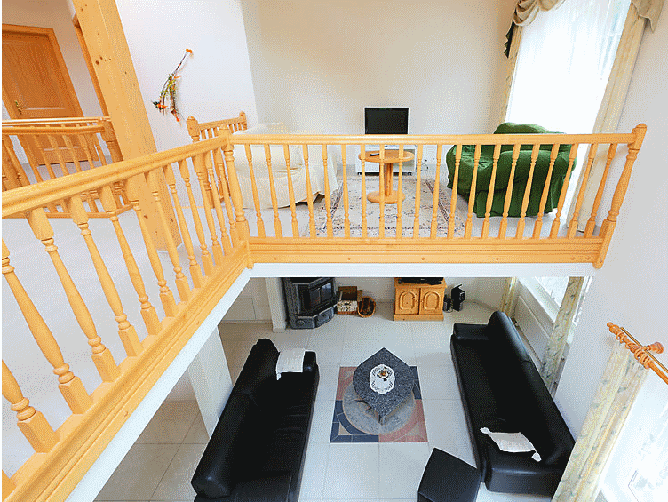 Thers is a spiral staircase to the upper floor with 2 double bedrooms, each room with 1 double bed. 1 double bedroom with 1 double bed and bath/WC and 1 small room with 1 bed. There is also an open gallery with sloping ceilings and Very beautiful view of the mountains. Shower/WC