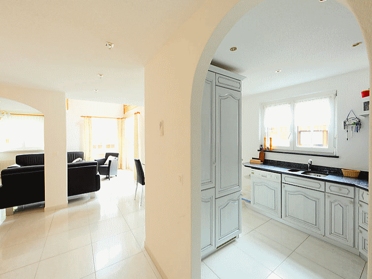 It is a 6-room penthouse (195 m2) on 2 levels with modern and tasteful furnishings: open large living/dining room with open-hearth fireplace, TV and hi-fi system. The is an exit to the balcony, with a south facing position and an open kitchen (4 hot plates, oven, dishwasher). Sep. WC.