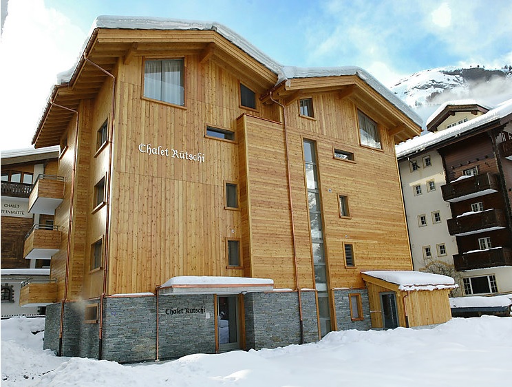 Beautiful, comfortable, luxurious chalet "Rütschi", 5 storeys, built in 2008. 7 apartments in the property. In the district of Steinmatte, 500 m from the centre, in a quiet position, south facing position. In the house: WiFi, sauna, steam room, spa area, lift, storage room for bicycles, storage room for skis, central heating system. Grocery 100 m, supermarket 550 m, restaurant, bakery 100 m, 8 minute walk to the centre, bus stop "Kirchbrücke" 100 m, railway station "Bahnhof Zermatt" 900 m. Mountain railway 700 m, ski rental 100 m, ski bus stop 150 m, ski school, children's ski school 500 m. Please note: baby equipment on request. There are more similar properties for rent in this same residence.