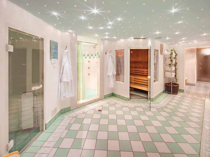 for 2 people on half board sharing a north facing twin room with shower and WC. Rooms with bath, shower, WC and south facing balcony, and single rooms are also available at a supplement. All bedrooms have 'Austrian twin' beds (two separate mattresses in 1 frame), hairdryer, safe and TV, extra charge for bathrobes. WiFi is available in lobby.