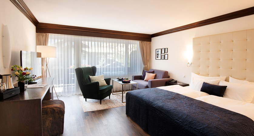 Matterhorn View Junior Suites with balcony are around 35m² and can sleep up to three (twin beds and single sofa bed). These rooms are also located in the interconnected suites building and are on request, so please call us to book.