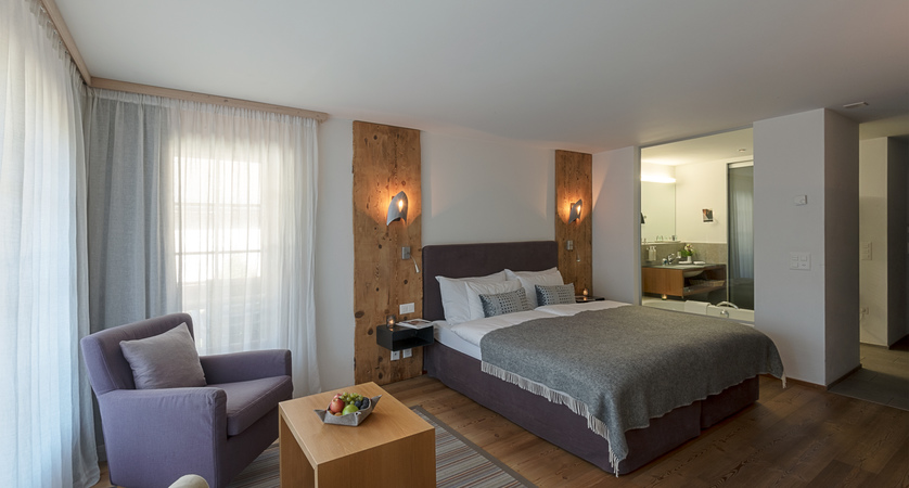 Alpine Junior Suites are around 32-35m² and sleep up to three (twin beds and single sofa bed). These suites have an open plan bathroom and are located in the interconnected suites building and are on request, so please call us to book.