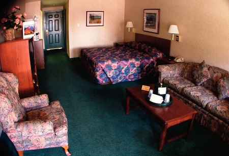 All comfortable rooms have two queens or a king bed, bath, shower, iron and large screen cable TV.