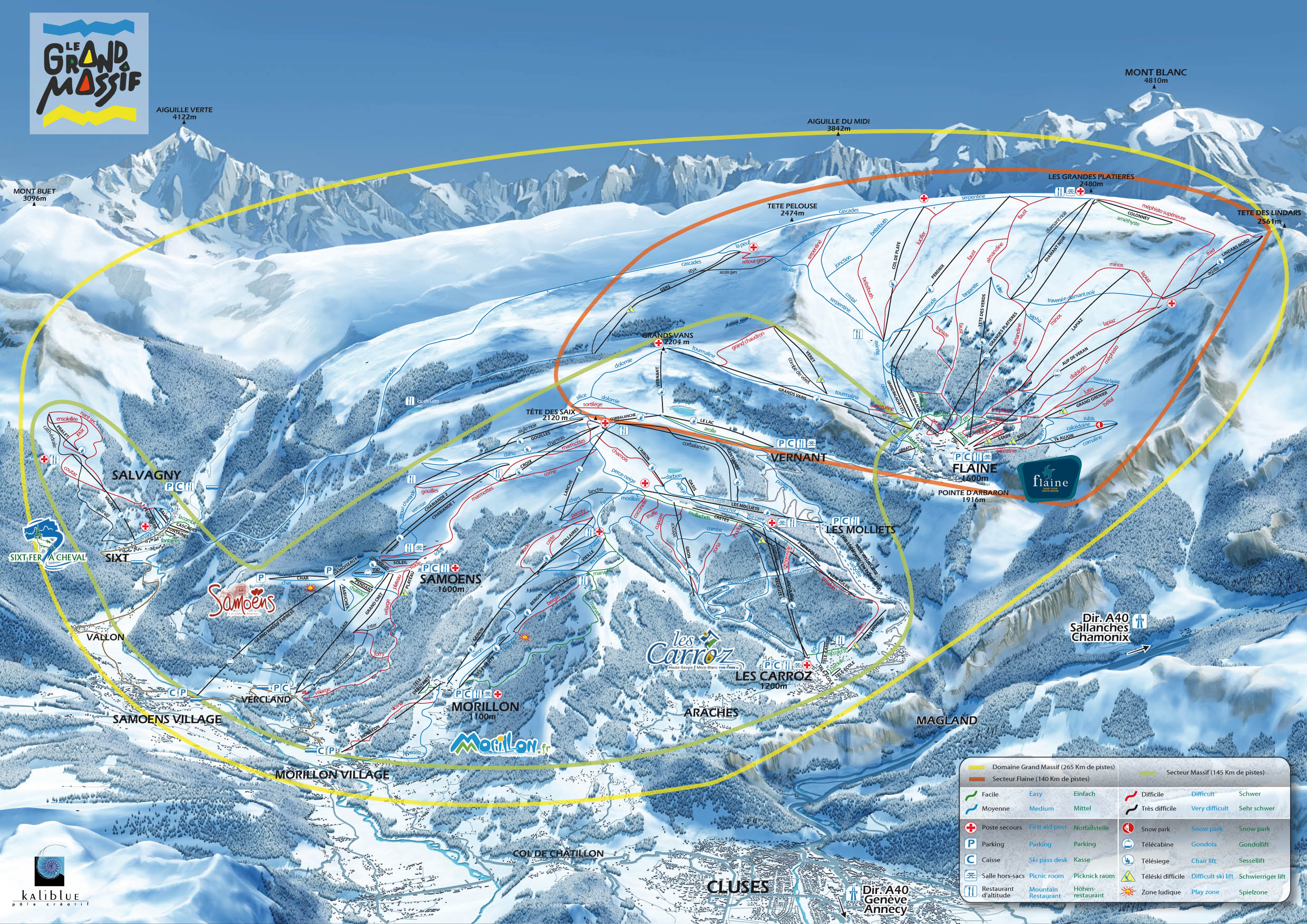 The Grand Massif is a great all round ski area, perfect for ski holidys. It is the 4th largest ski area in the French Alps that is fully interconnected and it is is located less than 2 hours from Geneva airport. There are five ski resorts that make up the ski area of the Grand Massif: Flaine, Les Carroz, Morillon, Samoëns and Sixt Fer à Cheval. In total there is 265km of linked piste which cater well for all levels of skiers from beginner through to advanced.