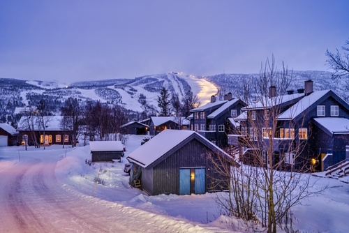 Geilo combines traditional mountain lodges and cozy cabins with modern hotels and spa facilities, all surrounded by picturesque winter scenery. The town itself has a welcoming, small-town feel with local shops, cafes, and restaurants.